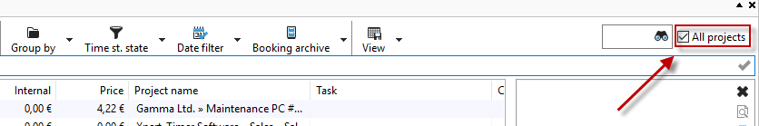 In the figure below, you can see the "All projects" checkbox on the far right.