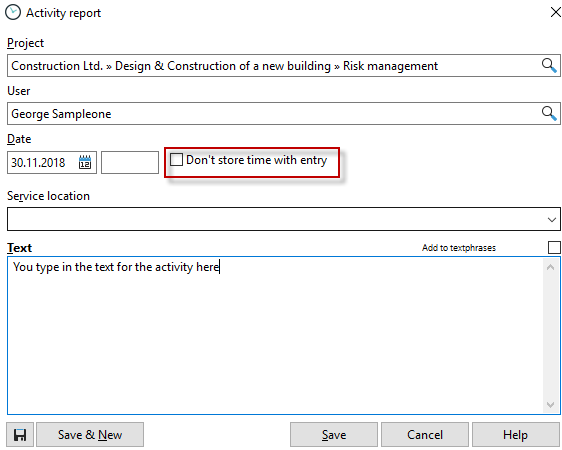 The history can also be kept independently of time stamps. This is useful for users who want to know what activities have been performed for the project, but for whom the direct reference to the time is not necessary.