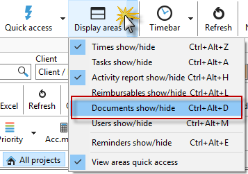 To display the documents assigned to your projects in the Project Manager, you can show or hide the document area via the menu item "View" -> "Documents on/off."