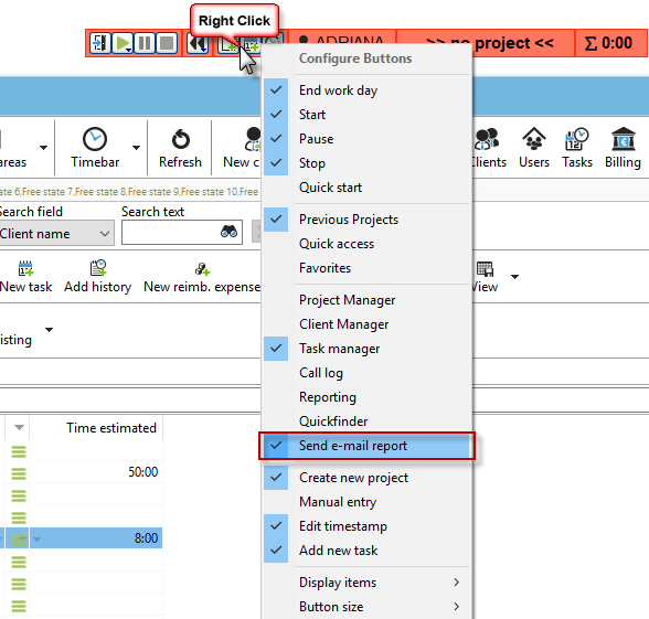 To use this feature, right-click on one of the buttons and activate the "Send email report" button in the timeline.