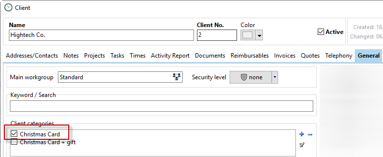 You can create global customer categories. This allows you to filter by customers who only receive a Christmas card, for example. Other customers receive a card and a gift. Set the check mark either directly in the customer data or in the customer management overview.