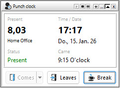 From that point on, all actions must be performed in Time Tracking. This means breaks and the end of the working day are recorded using Time Tracking.