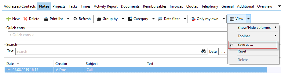 To keep track of ongoing communication with the customer, you can enter notes about the customer in Xpert-Timer. You can later filter these by words in the text or narrow them down by date.