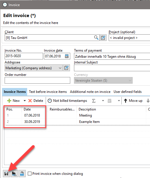 It is best to create three invoice items for testing purposes when designing the template. Save the invoice and then click on "Edit template." This will give you data in your template and allow you to test the appearance much better.