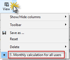 Use the Views button to save your desired column layout and the selected filter and grouping settings. This allows you to easily manage multiple list views and retrieve them at the touch of a button. |