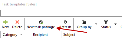 The task package will only be visible in the list of task templates once a task has been assigned to this package. Therefore, create a new task template.