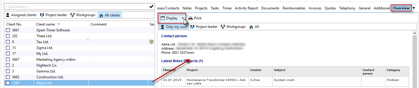 << Click to Display Table of Contents >> Navigation: Xpert-Timer Manual > Client management > Customer data > Overview |