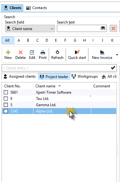 In the next step, open the customer's detailed data by double-clicking on the customer name in customer management: