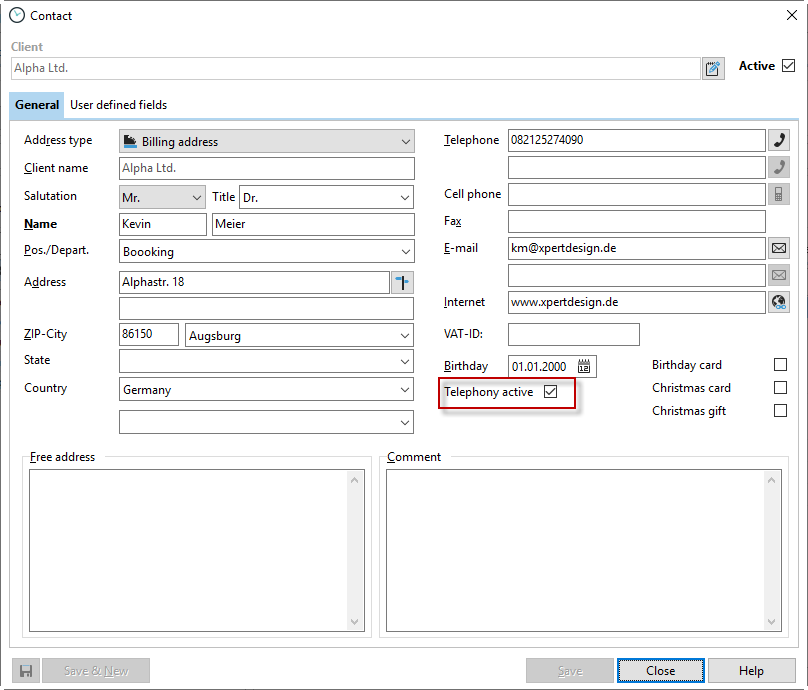 If you have multiple contacts for the customer, you can activate them individually for telephony: