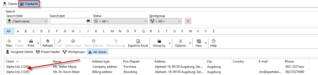 In Xpert-Timer, a customer can have multiple contacts—this is often the case with large customers in particular.