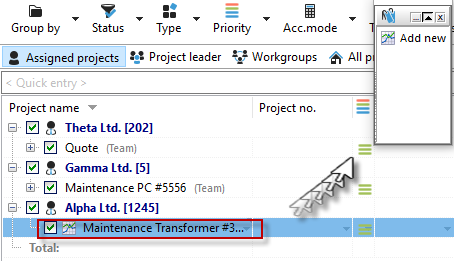 Clicking on a project immediately starts the time measurement and launches the project in the timeline. This allows you to switch between your projects even faster.