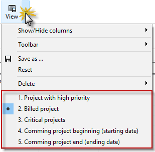 << Click to Display Table of Contents >> Navigation: Xpert-Timer Manual > Projects > Project Manager - Areas > Project list > Filter and grouping options |