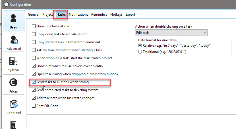 If you only want to send individual tasks to Outlook, do not use this option. When you save the task, you will be asked if you want to export the task you just created to Outlook. Now you can decide how to proceed.