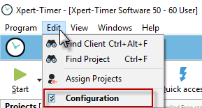 Click on the "Edit" menu item in the Project Manager and select "Configuration" to configure your Xpert-Timer settings.