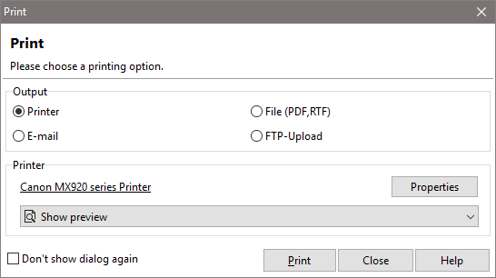 You then have the following convenient options for printing your project reports: