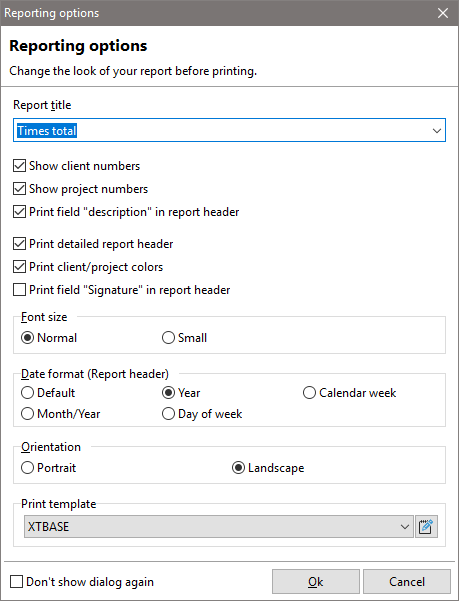 When printing your project reports, you have the option of customizing the report title and selecting the print template. You can also make adjustments to the report via the xperttimer.ini file.
