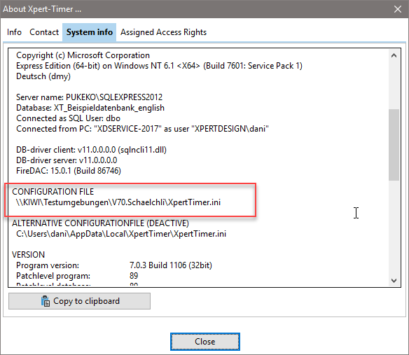 To customize the reports generated by the Xpert-Timer system, you can customize the XpertTimer.ini file accordingly. You can find the path to your xperttimer.ini file in the Project Manager under the menu item "Help" -> About Xpert-Timer -> System Info.