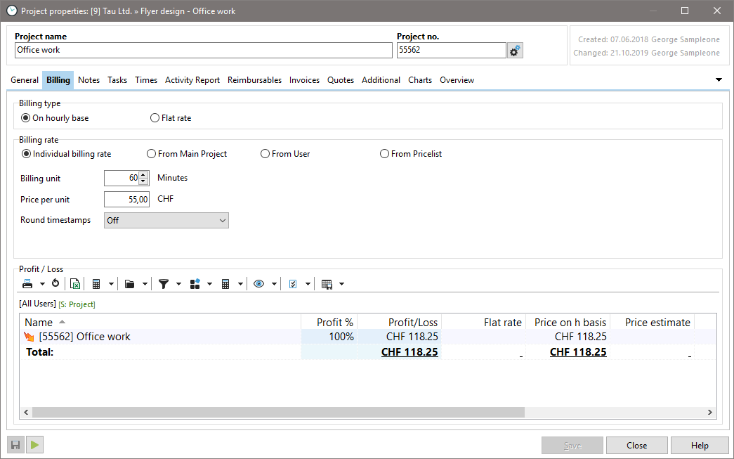 << Click to Display Table of Contents >> Navigation: Xpert-Timer Manual > Projects > New project / Project properties > Project Properties - Billing |