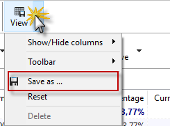 Use the Views button to save your desired column layout and the selected filter and grouping settings. This allows you to easily manage multiple list views and retrieve them at the touch of a button. |