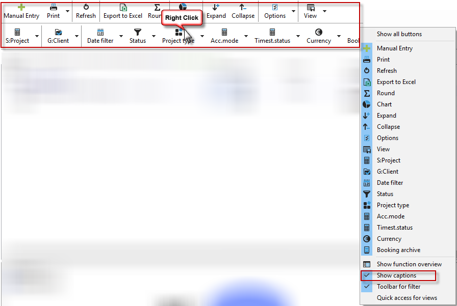 By right-clicking on the toolbar of your evaluation, you can merge the individual rows of the buttons into one row. You can also show or hide the labels.